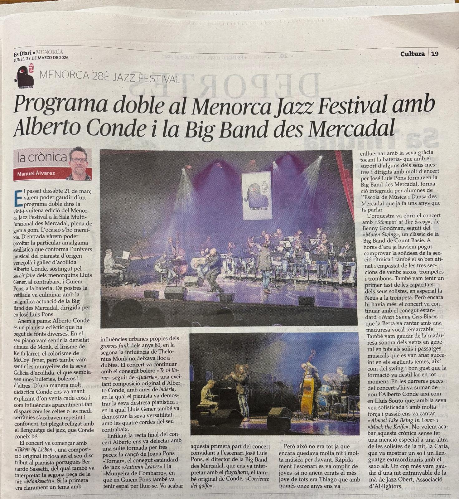 - XXVIII Festival de Jazz de Menorca 2026.